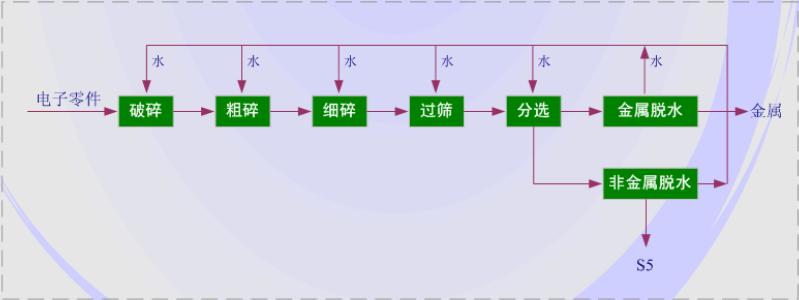 将经过拆解分类处理后概略分类出的有价资源,以粉碎分选技术做进一步的细部处理,再将资源分选为「金属」及「非金属」二大类,藉此取得价值更丰厚的再生资源。