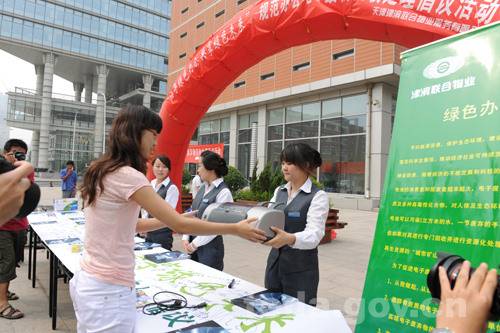 由津滨联合物业服务公司策划并组织实施的电子废弃物现场回收活动在金融街举行,企事业单位及居民踊跃移交了电子废弃物。
